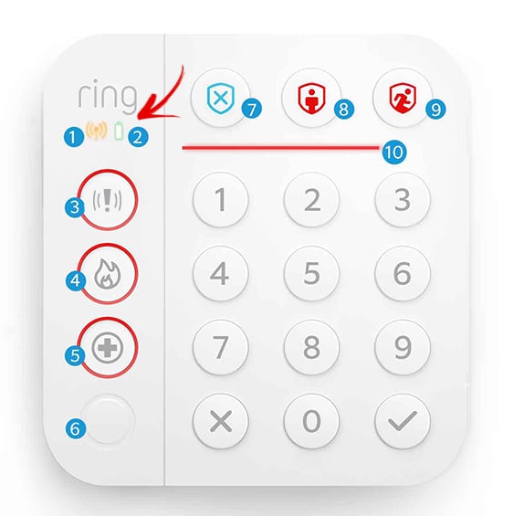 Below we will go into further detail about how long the battery lasts, when to recharge, the meaning of the LED indicating lights and their various colors, and other information to know about the Ring Keypad.