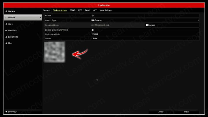 Once “Platform Access” mode is enabled, click on “Hik-Connect” and then choose your verification code. If you do not see “Hik-Connect” as an option, you should see “Cloud P2P.” It may differ between devices.